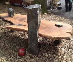 Hier in der Ausstellung habe ich oft erlebt, das diese Modelle gerne auch zum Sitzen genutzt werden. Also was sehen Sie darin? Mehr Tisch oder mehr Bank? …wie Sie wollen. Einzigartige Unikate für den etwas anderen Geschmack.